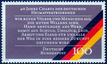 In Stuttgart – Bad Cannstatt von dreißig Vertretern der deutschen Heimatvertriebenen unterzeichnet und tags darauf vor dem Stuttgarter Schloß und im ganzen Bundesgebiet verkündet gilt die Charta als Grundgesetz der deutschen Heimatvertriebenen. In ihrem Kern enthält sie einen Aufruf zum Verzicht auf Rache und Gewalt trotz des soeben erlittenen Unrechtes und ein Bekenntnis zur Schaffung eines geeinten Europas sowie zur Verständigung zwischen den Staaten, Völkern und Volksgruppen.