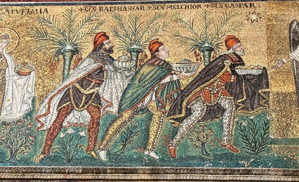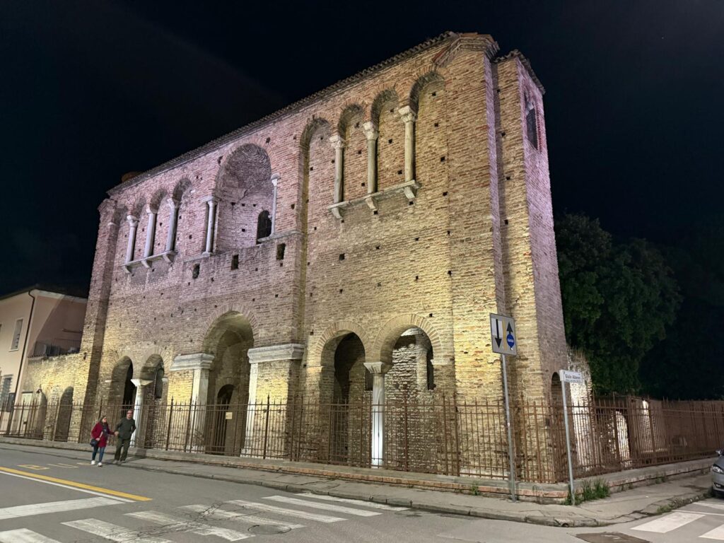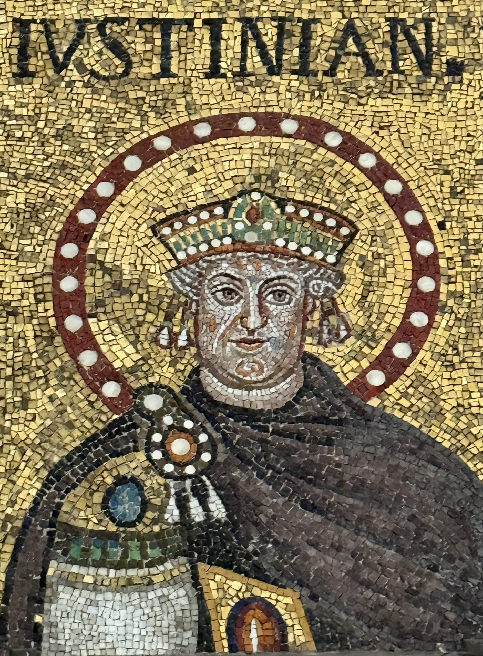 So nimmt es nicht Wunder, daß Rom – also Konstantinopel – nachdem es sich vom fast 200jährigen Germanensturm erholt hatte, unter Kaiser Justinian in Italien wieder reinen Tisch machen wollte. Ravenna wurde zum Verwaltungssitz des Exarchats, und gereinigt wurde wirklich: Was arianisch war, wurde katholisch, und gotische Potentaten auf Mosaiken wurden ausgelöscht. Ein Porträt von Theoderich – das einzige, das wir besitzen – war dann doch zu schön, als daß man es hätte zerstören wollen. Man tauschte nur die Beschriftung aus und flugs wurde aus König Theoderich Kaiser Justinian.