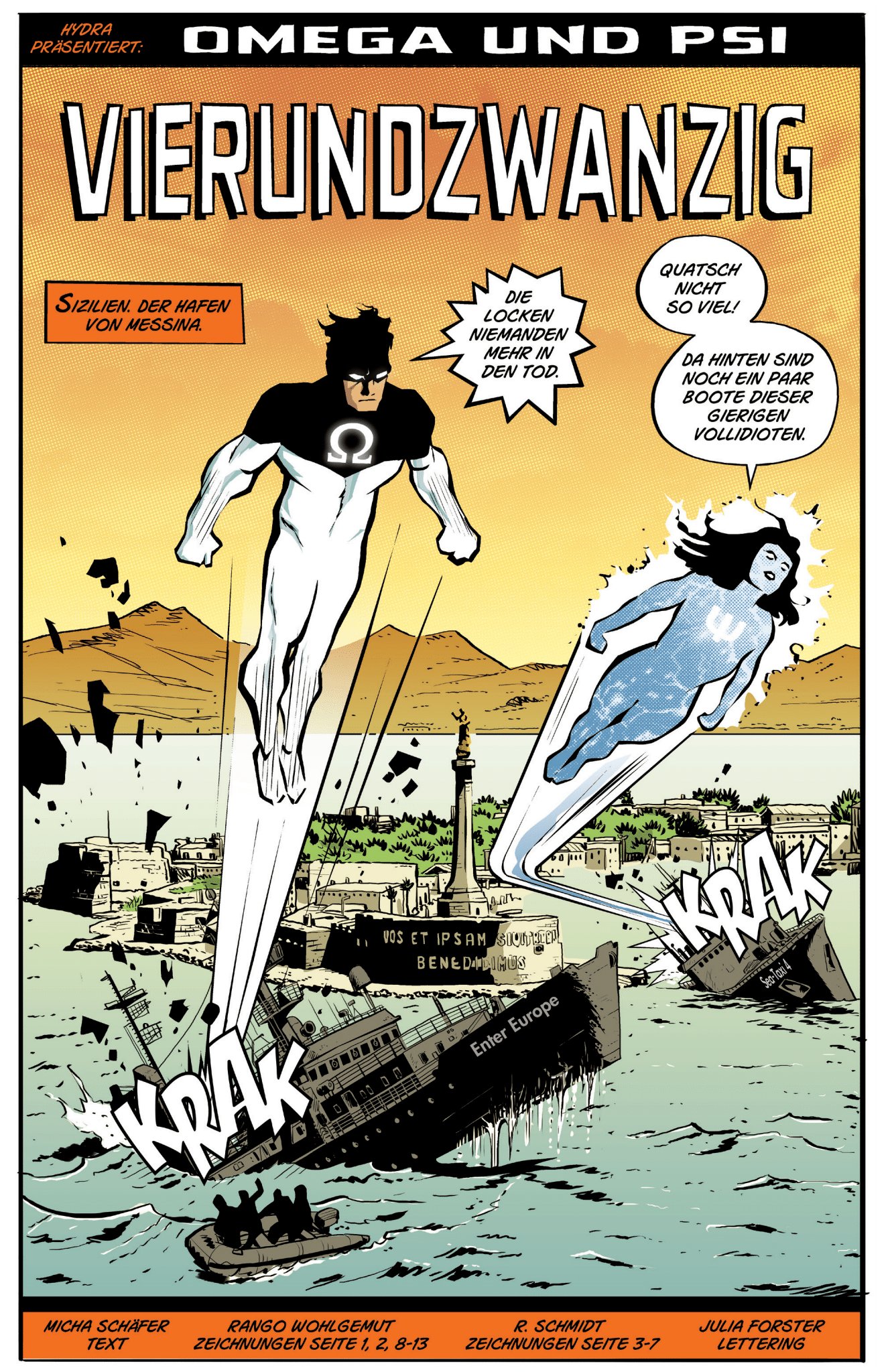 Einen anderen Ansatz verfolgt unsere Heftserie HYDRA COMICS. Ähnlich wie bei der streng an den Zeitgeist angepaßten Konkurrenz steht die Unterhaltung im Mittelpunkt, und politische Themen werden nicht mit dem Holzhammer vermittelt. Während es bei den großen Verlagen normal ist, daß Figuren in einem in Deutschland spielenden Comic aus allen Teilen der Welt stammen, ist es bei uns selbstverständlich, daß die Charaktere einander z.B. in der örtlichen Studentenverbindung kennenlernen. Wir erzählen Science Fiction-, Mystery-, Superhelden- oder klassische Actiongeschichten, die vor allem Spaß machen sollen. Eine Regel dabei ist, daß es keine Denkverbote gibt und man sich in unseren Comicwelten „austoben“ kann. So stellen wir uns beispielsweise im aktuellen Heft die Frage, was wir tun würden, wenn wir für 24 Stunden Superkräfte hätten – eine Frage, die im Büro von Kanzler Scholz endet…